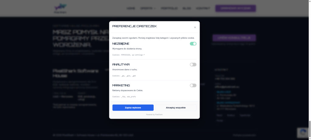 - Niezbędne: Wymagane do działania strony (zawsze aktywne).